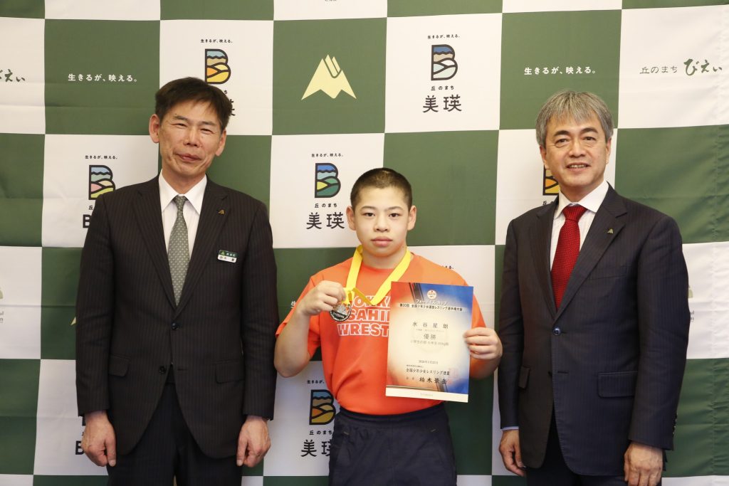 美瑛小学校6年、水谷星朗さんが全国少年少女選抜レスリング選手権大会の6年生60㎏級で見事、全国優勝しました。美瑛町の誇りです。おめでとうございます。報告にお越しくださいました。ますますのご活躍をお祈り申し上げます。腕相撲したら瞬殺されました(笑)(2/20 Facebookより転載)