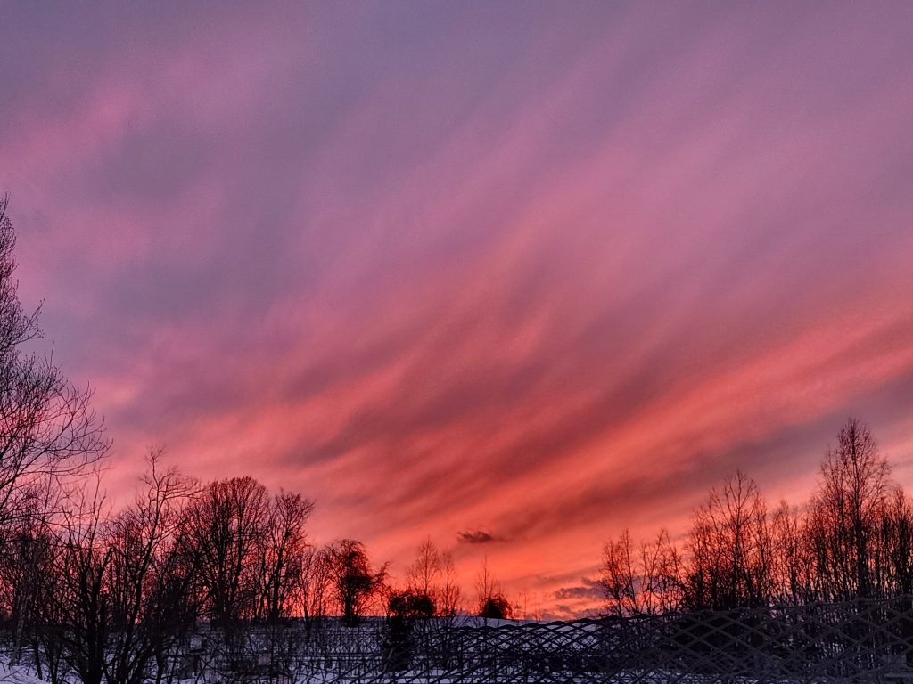 久しぶりの燃える夕焼け。明日も良い日ですね。(2/24 Facebookより転載)