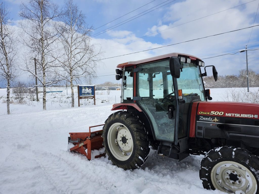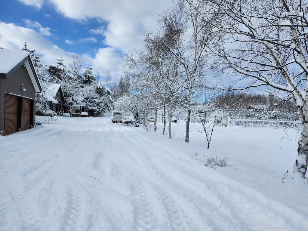 久しぶりの休みにどか雪。ハウス、倉庫、家まわりの冬支度大急ぎで始めます。冬の青空、気持ち良い~