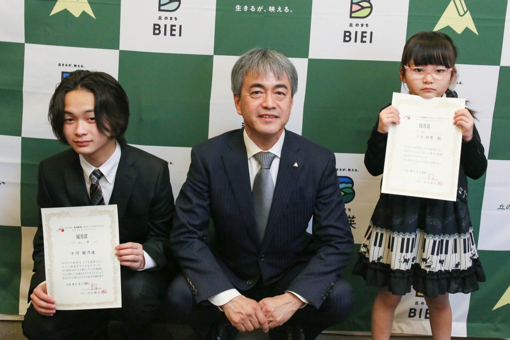 美瑛町在住の十河龍乃進さん(美瑛中1年)、紗雪さん(びえい青葉幼稚園年長さん)兄妹が第59回カワイピアノコンクール旭川予選会と2026カワイこどもピアノコンクール旭川地区オーディションでそろって優秀賞を受賞し、全道大会に出場することになりました。報告にお越しくださいました。2人とも全国がんばってください!(2/25 Facebookより転載)